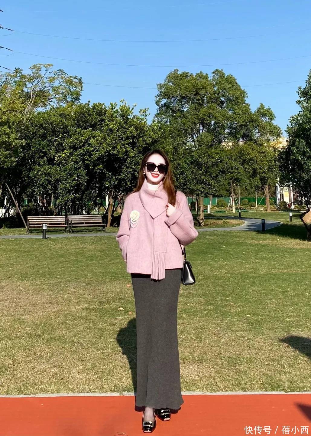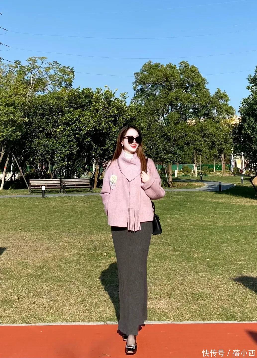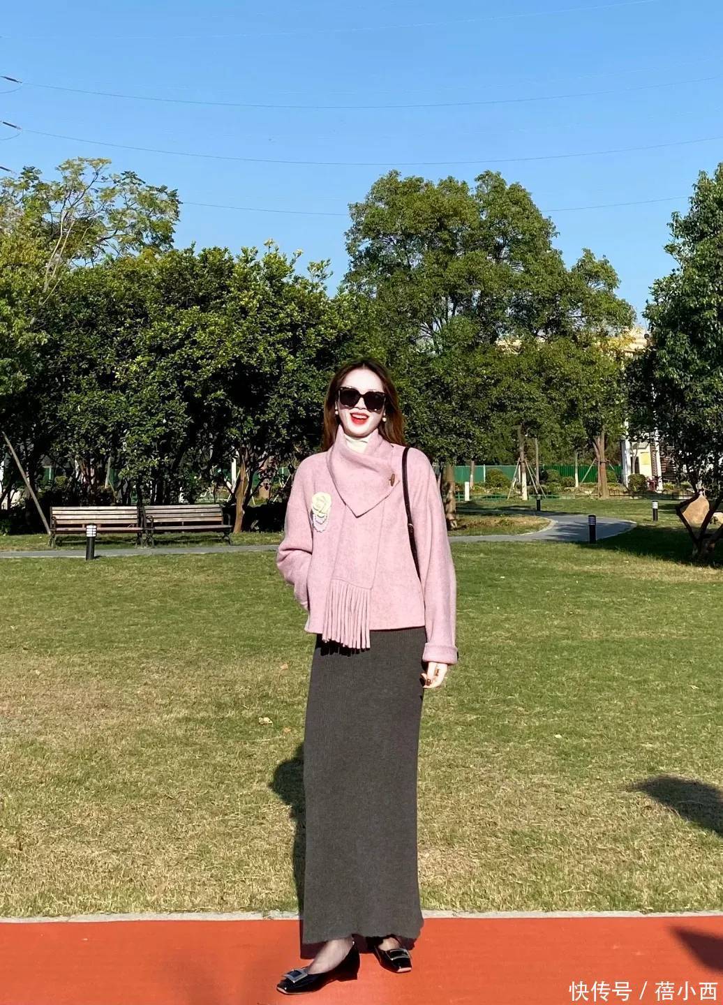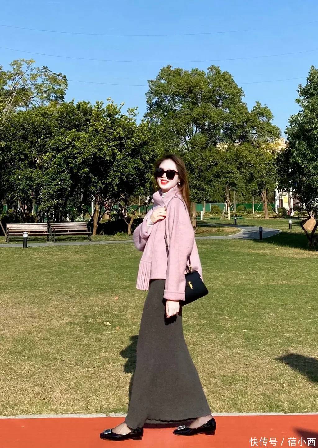 针织半裙是粉紫色毛呢外套的“最佳拍档”,软糯的质感和毛呢的挺括形成反差,温柔感翻倍,选款时重点关注颜色,可以选择这种低调的深灰色,长度到脚踝,能遮住小腿的赘肉,不会显得拖沓,不管是通勤还是日常逛街都合适,搭配短靴或乐福鞋,温柔又利落。